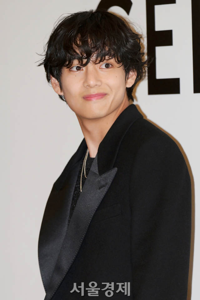 그룹 방탄소년단(BTS) 뷔가 30일 오후 서울 영등포구 여의도 더현대 서울에서 진행된 프랑스 럭셔리 브랜드 셀린느 팝업 스토어 오픈 기념 포토콜에서 포즈를 취하고 있다.