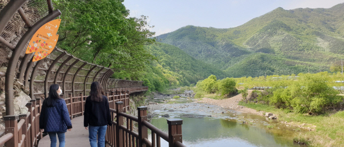 충북 영동군에는 자연의 숨결을 느끼며 힐링할 수 있는 관광지들과 그 관광지들을 잇는 둘레길이 잘 조성돼 있다.