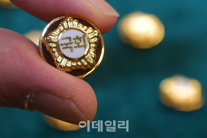 제21대 국회의원선거를 이틀 앞둔 지난 2020년 4월 13일 서울 여의도 국회 사무처가 제21대 국회의원들에게 지급될 배지를 공개하고 있다.(사진=이데일리DB) |