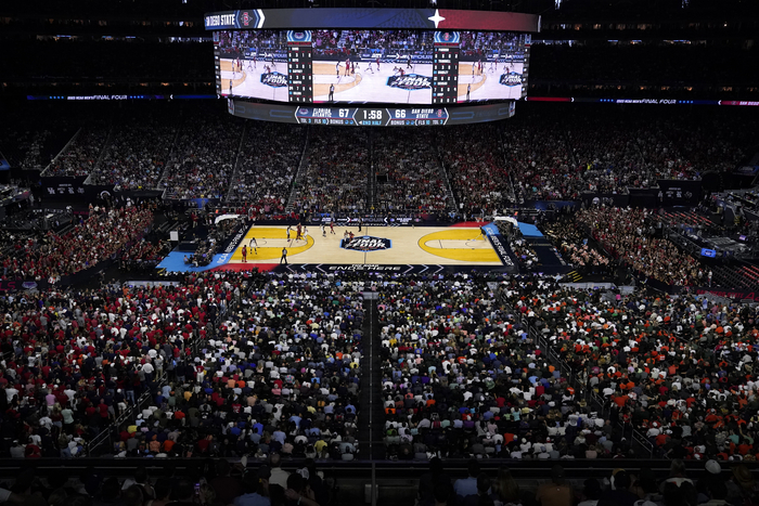 2일 남자대학농구 NCAA 토너먼트 4강전이 벌어지는 텍사스주 휴스턴 NRG 스타디움 특설 코트에 모인 관중들. AP연합뉴스 |