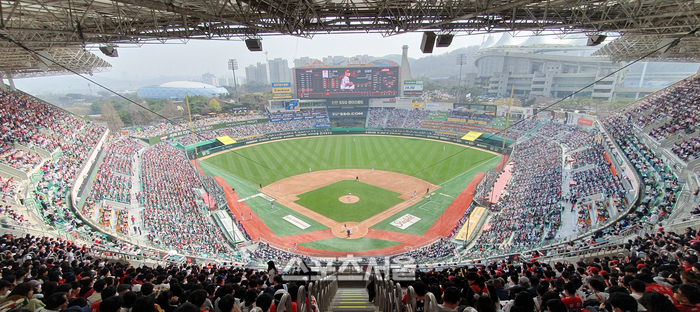 전날 개막전도 만원 사례를 기록했다. 2만3000석이 다 팔렸다. 이와 함께 전국 5개 구장이 전부 매진됐다. 10개 구단 체계가 된 이후 처음이다. 합계 관중이 10만명이 넘었다.