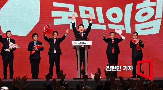 국민의힘 당대표로 선출된 김기현 의원이 8일 경기 고양시 킨텍스에서 열린 제3차 전당대회에서 수락연설을 하고 있다. 사진=김현민 기자 kimhyun81@ |