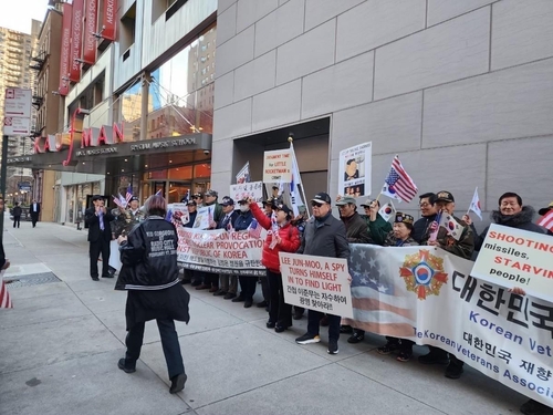 국제탈북민인권연대 마영애 대표 주도로 뉴욕 재향군인회, 뉴욕·뉴저지 베트남 참전 유공자 전우회, 구국동지회, 이승만·박정희 기념회 등 50명 이상이 카우프먼뮤직센터 앞에서 "대한민국에 미친 핵도발을 자행하는 김정은 정권을 규탄한다"고 반발했다.