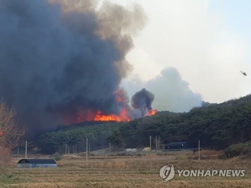 홍성군 서부면에서는 전날 오후 11시께 산불이 발생해 이날 오후까지 진화되지 않고 있다.