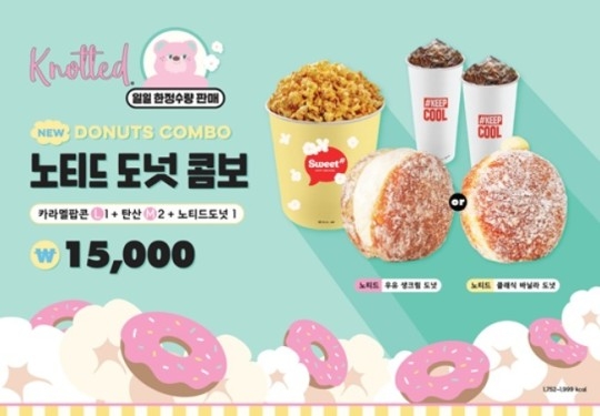 카라멜 팝콘과 음료 2잔, 노티드 도넛 1개가 결합된 ‘노티드 도넛 콤보’를 통해 관람객들은 극장에서 포근함과 달콤함을 맛볼 수 있으며 가격은 1만5000원에 선보인다. 특히 도넛 2종은 노티드 매장에서 판매하는 동일 제품으로 제공돼 기대를 모은다.