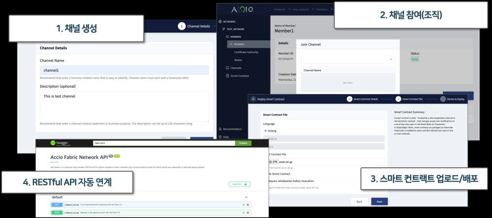 부산대 블록체인 플랫폼 연구센터가 전시하는 서비스형 블록체인(BaaS) ACCIO는 자동화된 네트워크 설정 지원으로 누구나 손쉽게 블록체인 네트워크를 설치·배포할 수 있도록 돕는다. 간편하고 직관적인 사용자 인터페이스(UI)를 갖췄으며 100% 자동화 기능으로 노코드 기반 블록체인 네트워크 배포가 가능하다.