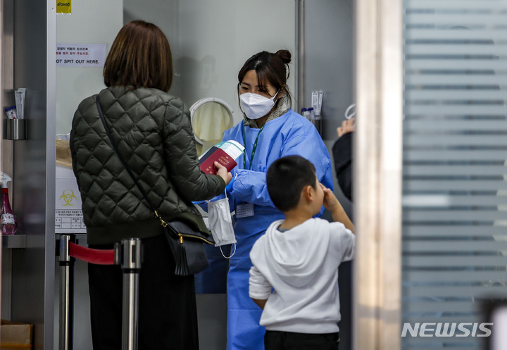 [인천공항=뉴시스] 정병혁 기자 =지난달 29일 인천국제공항 제1터미널 코로나19 검사센터를 찾은 여행객들이 검사를 받기 위해 대기하고 있다. 2023.03.29. jhope@newsis.com |
