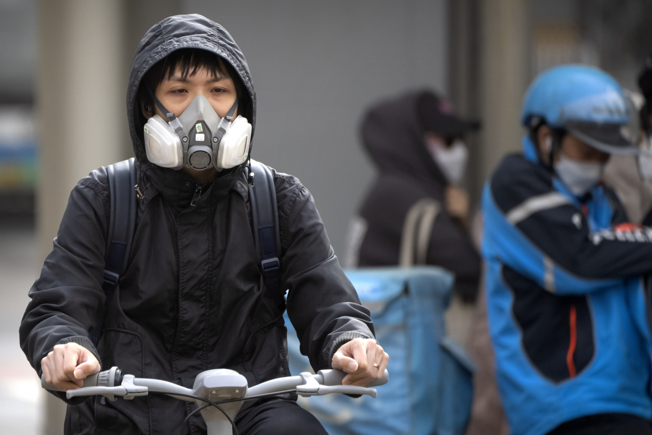 중국 베이징에 황사 황색경보가 내려진 11일 한 시민이 방진마스크를 착용한 채 자전거를 타고 있다. 베이징시 환경보호 관측센터에 따르면 이날 오전 8시 베이징 전역의 공기질지수(AQI)는 최악인 6급 '엄중 오염' 상태를 기록했다. 이번 황사는 올해 들어 다섯번째로 규모가 크다. [연합] |