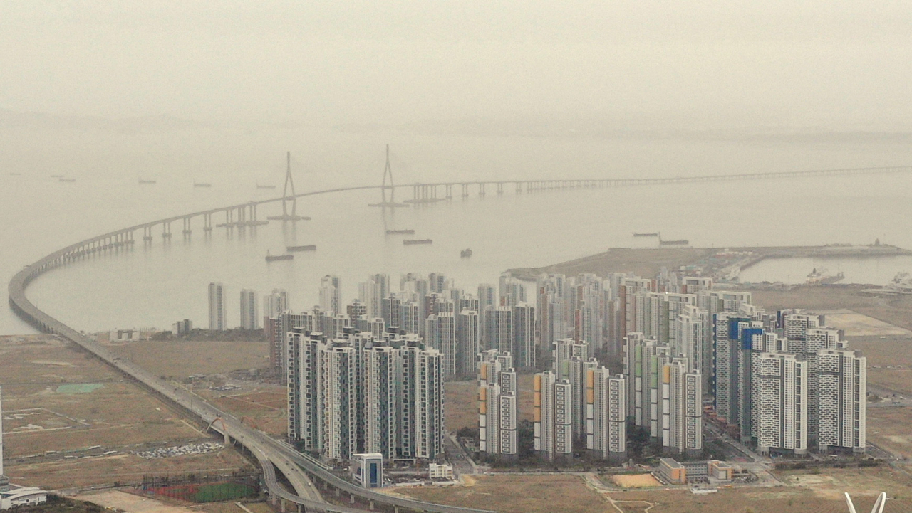 인천시 연수구 동춘터널 전망대에서 바라본 인천대교 일대가 뿌옇게 보인다. [연합] |