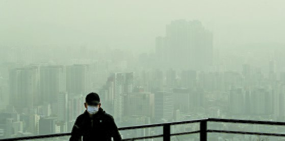 13일 오전 서울 중구 남산에서 바라본 도심이 미세먼지에 갇혀있다. [뉴시스] |