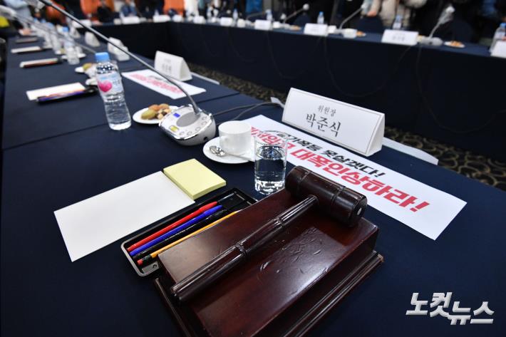 18일 오후 서울 프레스센터에서 열릴 예정이었던 최저임금위원회 제1차 전원회의가 박준식 최저임금위원회 위원장 등 공익위원들이 회의에 참석하지 않아 파행되고 있다.