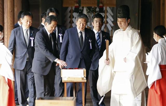 기시다 총리는 이날 시작된 야스쿠니 신사의 춘계 예대제(例大祭·큰 제사)를 맞아 '내각총리대신 기시다 후미오' 명의로 '마사카키'라고 불리는 공물을 바쳤다. 교도통신에 따르면 초당파 의원 모임인 '다 함께 야스쿠니신사를 참배하는 국회의원 모임' 소속 의원 90명도 야스쿠니 신사를 방문해 집단 참배했다.