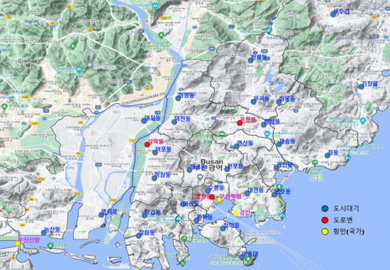 부산지역 대기환경측정망 운영지점. |