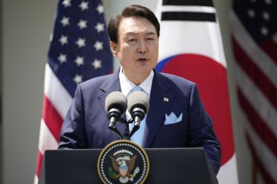 미국을 국빈 방문한 윤석열 대통령이 지난 26일(현지시간) 워싱턴DC 백악관 로즈가든에서 열린 기자회견에서 발언하고 있다. [이미지출처=연합뉴스] |