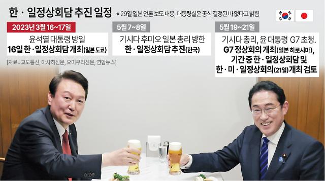 한 정부 인사는 "2일 한국과 일본 정부가 7~8일 기시다 일본 총리 방한 일정과 함께 서울 한·일 정상회담 개최를 공식화 할 것으로 알고 있다"고 전했다.