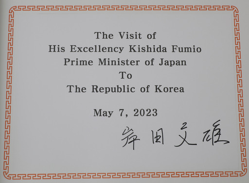 기시다 후미오 일본 총리가 7일 서울 동작구 국립서울현충원에서 참배하고 미리 준비된 영문 문구에 ‘岸田文雄(기시다 후미오)’라고 서명한 방명록.
