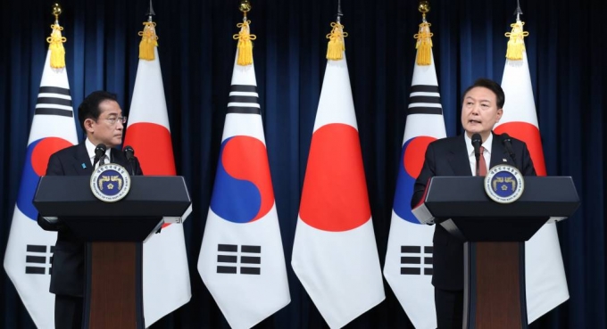 윤 대통령과 기시다 총리는 7일 서울 용산 대통령실 청사에서 한일정상회담 직후 공동기자회견에서 이같이 밝혔다.