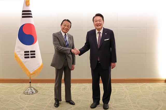 아소 "尹 결단·리더십, 양국 관계 전혀 다른 국면"