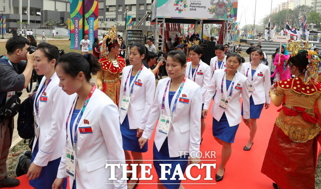 북한이 오는 9월 항저우 아시안게임에 참가할 것으로 전망된다. 2018 자카르타-팔렘방 아시안게임 개막을 이틀 앞둔 2018년 8월 16일(현지시각) 오전 인도네시아 자카르타 선수촌에서 입촌식을 마치고 이동하는 북한선수단. /뉴시스 |