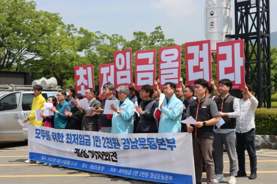 민주노총 경남본부를 비롯한 도내 시민사회단체들은 이날 경남도청 정문에서 기자회견을 열고 현행 최저임금으론 생계부담을 덜기엔 부족하다며 임금인상을 주장하고 본부 결성을 알렸다.