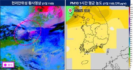 기상청은 이날 “오전 11시 고비 사막, 내몽골 고원 등에서 발원한 황사가 북서풍을 타고 이동해 서해 5도(백령도) 지역에서 황사가 관측되고 있다”며 “경기 북부와 강원 북부의 미세먼지 농도 역시 높아지고 있다”며 이같이 밝혔다.