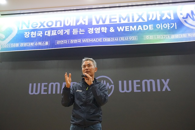 이번 특강에는 서울대 재학생 150명이 참석했다. 장 대표는 약 27년간 게임 업계에서 일하며 겪은 이야기들을 풀어내며 "블록체인이라는 기술적 혁신은 지금까지 제가 본 것 중 가장 파괴력이 있다"고 말했다. 이어 "한국 주요 인터넷, 게임 회사들은 인터넷이 상업화되던 시점에 창업했는데, 마찬가지로 지금이 창업하거나 새로운 일을 시작하기에 가장 좋은 시기라고 생각한다"며 "꿈을 갖고 세상을 변화시킬 수 있는 일에 매진해주길 바란다"고 강조했다.