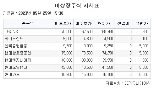 25일 비상장 주식시장은 4일 연속 호가 변화가 없었다.