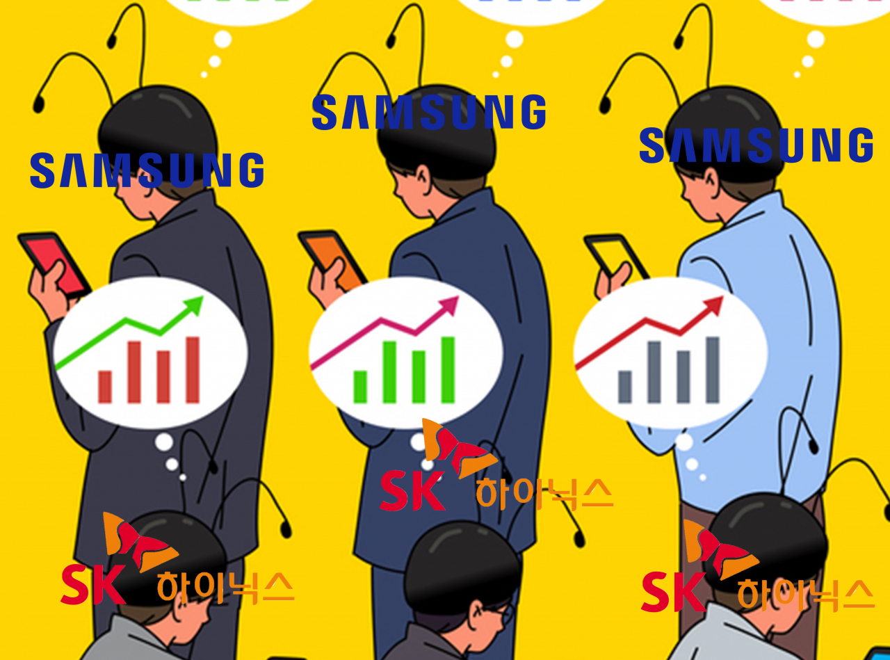 이날 한 온라인 주식 토론방에는 ‘SK하이닉스는 10만원 뚫었는데 삼성전자는 7만원도 못 뚫고 뭐하냐’, ‘주가 보니 삼성전자가 아니라 SK하이닉스가 대장주였다’, ‘SK하이닉스 반이라도 가라’ 등 아쉬움을 토로하는 글들이 올라왔다.