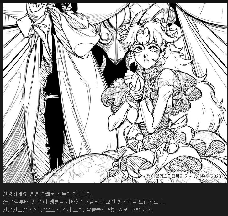 카카오웹툰 스튜디오 또한 지난 5월 30일 공지를 통해 오는 6일까지 '인간이 웹툰을 지배함' 게릴라 공모전을 연다고 밝혔다.