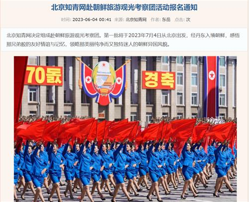 이 사이트는 또 8월 하순에 2차 북한 관광을 실시할 계획이라고 설명했다. 그러나 중국의 검색포털 바이두에서 이 매체 홈페이지를 클릭하면 ‘허위 정보가 있을 수 있으며 개인 정보를 빼내거나 비용을 가로챌 수 있다. 피해 방지를 위해 이 홈페이지 방문에 신중해야 한다’는 바이두의 보안 경고문이 뜬다.
