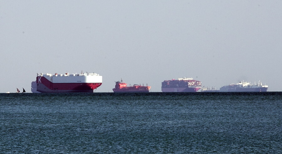 지난 2021년 3월 수에즈운하에서 발생한 컨테이너선 좌초 사고로 운하 입구에서 항해를 멈추고 대기 중인 상선들. 기후과학자들은 국제해사기구(IMO)가 대기오염을 줄이기 위해 2015년과 2020년에 크게 강화한 선박연료 황 함량 규제 조처와 지구의 태양에너지 흡수량 증가 사이의 연관성에 주목하고 있다. 연합뉴스 |