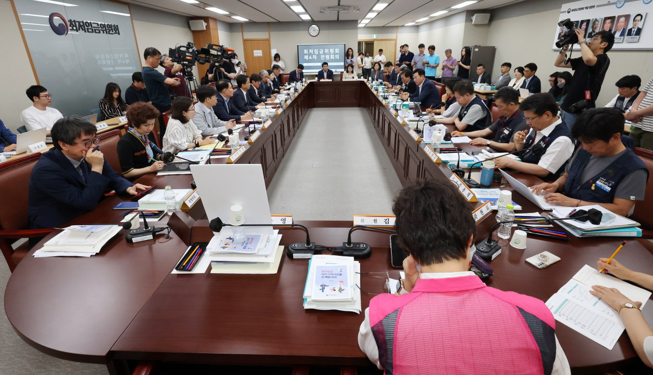 최저임금위는 13일 정부세종청사에서 내년도 최저임금을 업종별로 구분 적용할지 여부를 논의하기 위해 제4차 전원회의를 열었다.