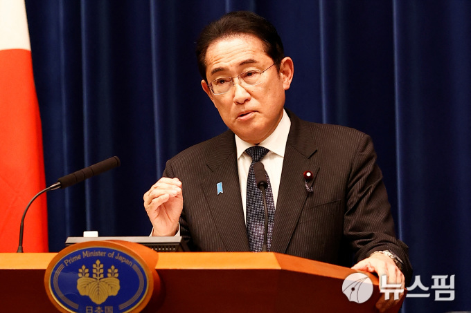 총리관저에서 기자회견하는 기시다 후미오 일본 총리. 2023.06.13 [사진=로이터 뉴스핌] |