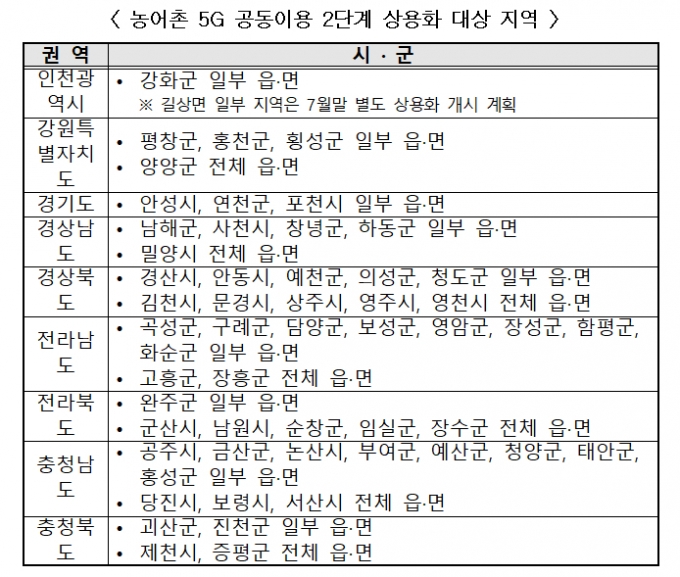 과학기술정보통신부는 20일 이동통신3사가 농어촌 일부 지역에서 5G 공동이용(로밍) 2단계 상용화를 개시했다고 밝혔다.