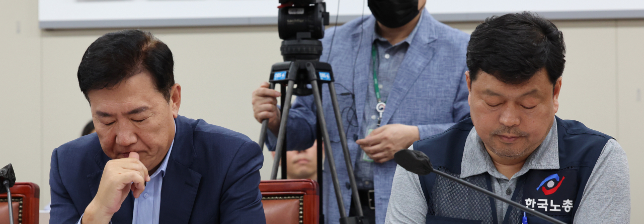20일 오후 세종시 정부세종청사 최저임금위원회 회의실에서 열린 제6차 전원회의에서 사용자위원인 류기정 한국경영자총협회 전무(왼쪽)와 근로자위원인 류기섭 한국노총 사무총장이 위원들의 발언을 경청하고 있다. 연합뉴스 |