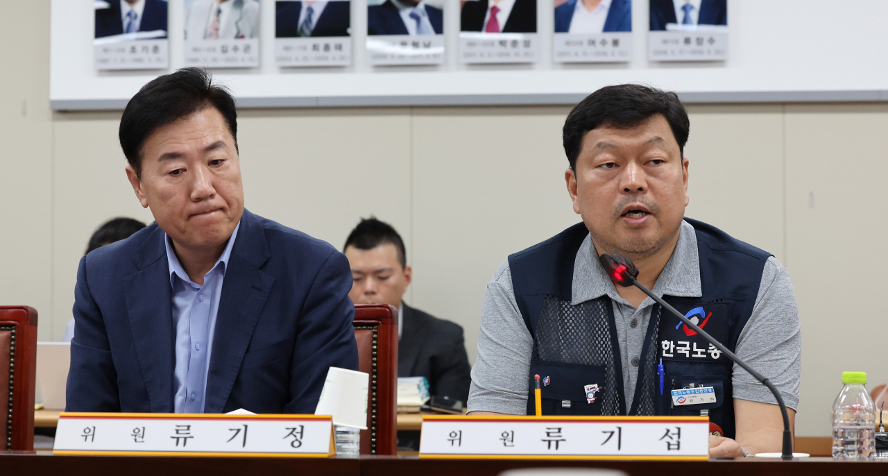 근로자위원인 류기섭 한국노총 사무총장이 20일 오후 세종시 정부세종청사 최저임금위원회 회의실에서 열린 제6차 전원회의에서 발언하고 있다. 왼쪽은 사용자위원인 류기정 한국경영자총협회 전무. 연합뉴스 |