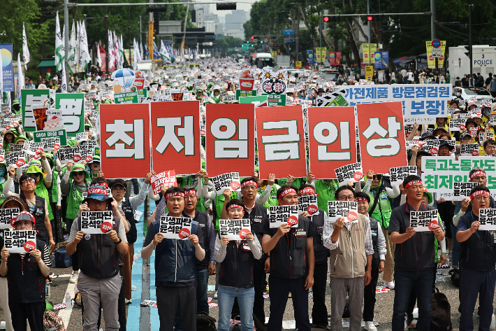 이들은 "살인적인 수준으로 폭등하는 물가 속에 실질임금은 하락하고 지금의 최저임금 만으로는 당장의 생존조차 어렵다"며 "최저임금 대폭 인상만이 노동자와 그 가족, 사회적 약자의 인간다운 최소한의 삶을 보장하는 것"이라고 주장했다.