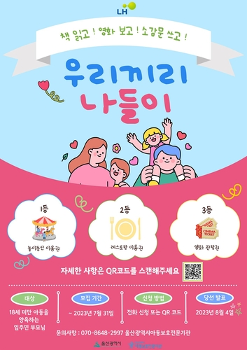 (울산=연합뉴스) 김근주 기자 =울산시아동보호전문기관은 한국토지주택공사(LH) 울산권주거지원종합센터와 협력해 '우리끼리 나들이' 사업을 진행한다고 27일 밝혔다.