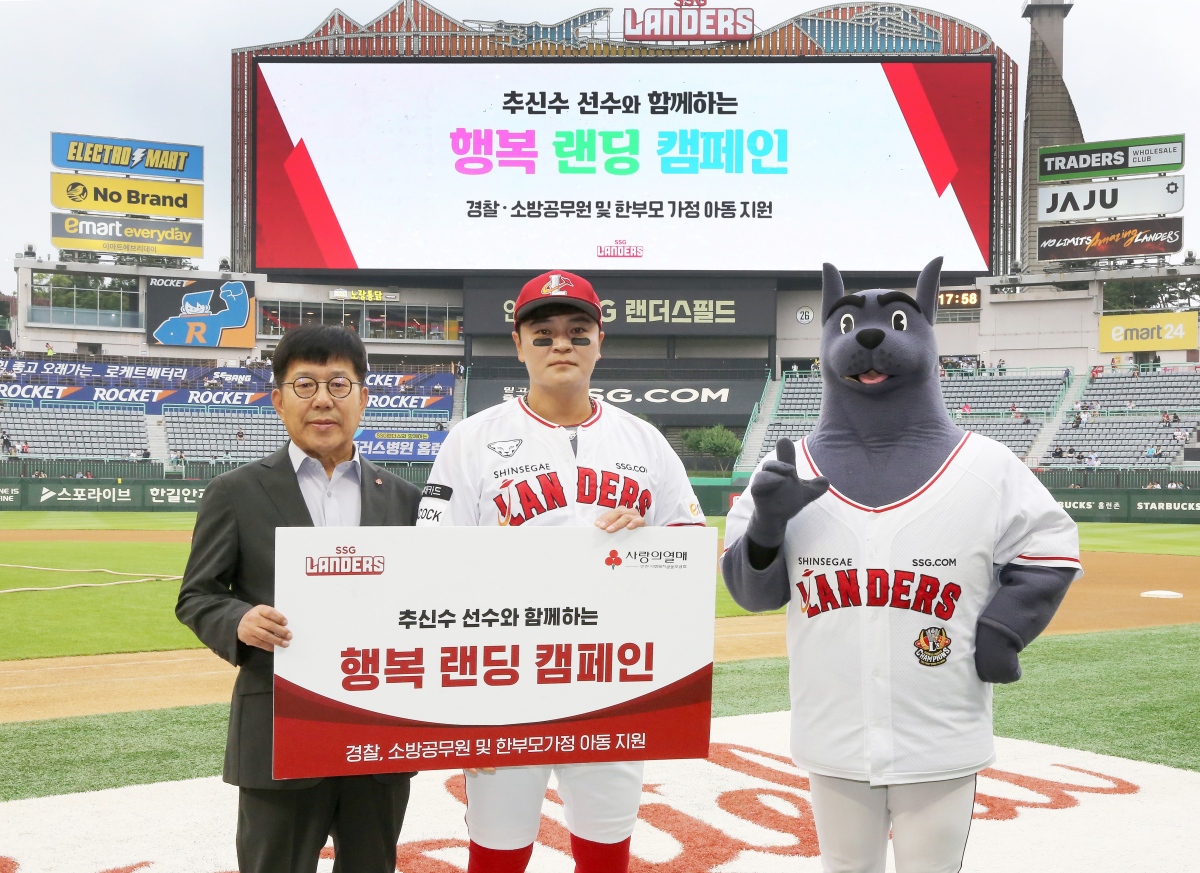 (엑스포츠뉴스 조은혜 기자) SSG 랜더스 추신수가 올 시즌 순직 경찰·소방공무원 유가족과 저소득 한부모 가정 지원을 위한 ‘행복 랜딩’ 기부 캠페인을 진행한다.