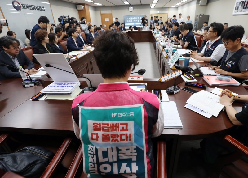 근로자위원인 박희은 민주노총 부위원장은 "지난 4년간 물가상승률에도 미치지 못한 최저임금 인상은 실질임금 삭감으로 이어졌다"며 "월급 빼고 다 올라 이제는 최저임금을 대폭 인상해야 한다는 의견이 많다"고 강조했다.