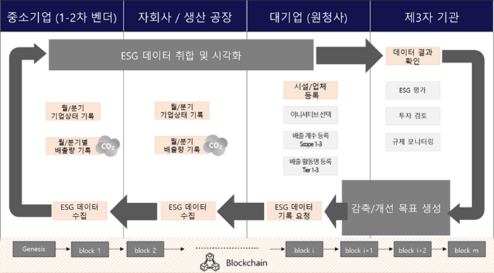 PlanESG 블록체인 플랫폼의 데이터 공유 및 개선 목표 생성 과정 |