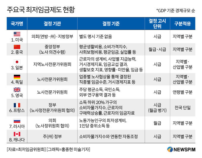 [그래픽] 주요국 최저임금제도 현황