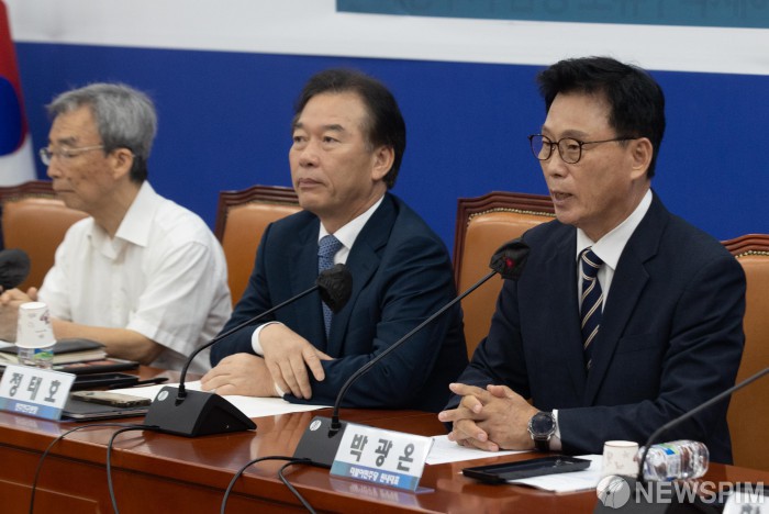 [서울=뉴스핌] 윤창빈 기자 = 박광온 더불어민주당 원내대표가 11일 오전 서울 여의도 국회에서 열린 IAEA 후쿠시마 오염수 보고서 검증 토론회에서 인사말을 하고있다. 2023.07.11 pangbin@newspim.com