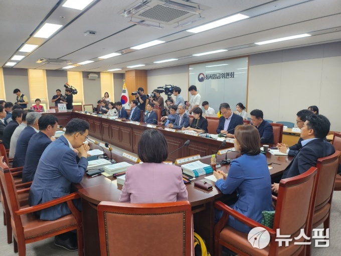 [세종=뉴스핌] 정성훈 기자 = 12일 정부세종청사에서 열린 최저임금위원회 '제12차 전원회의'가 열리고 있다. 2023.07.11 jsh@newspim.com |