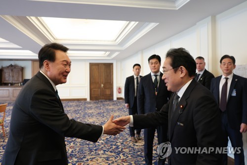 악수하는 윤석열 대통령과 기시다 일본 총리 |