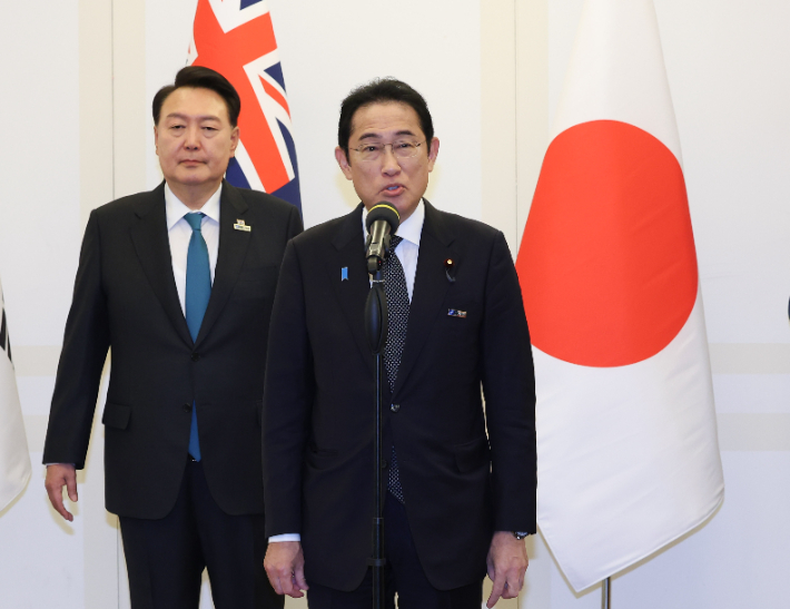 나토 정상회의 참석 중인 윤 대통령은 12일 리투아니아 수도인 빌뉴스에서 기시다 총리와 만나 약 30분 간 한일정상회담을 진행했다. 앞서 지난 4일 IAEA의 최종 보고서 발표 이후 기시다 총리는 오염수 방류 관련 반대 여론이 많은 우리나라를 설득하는 데 집중하는 것으로 전해졌다.