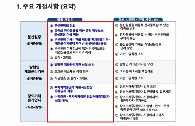 STO 제도권 편입을 위한 전자증권법·자본시장법 개정안 주요 내용. /사진제공=예탁결제원. |