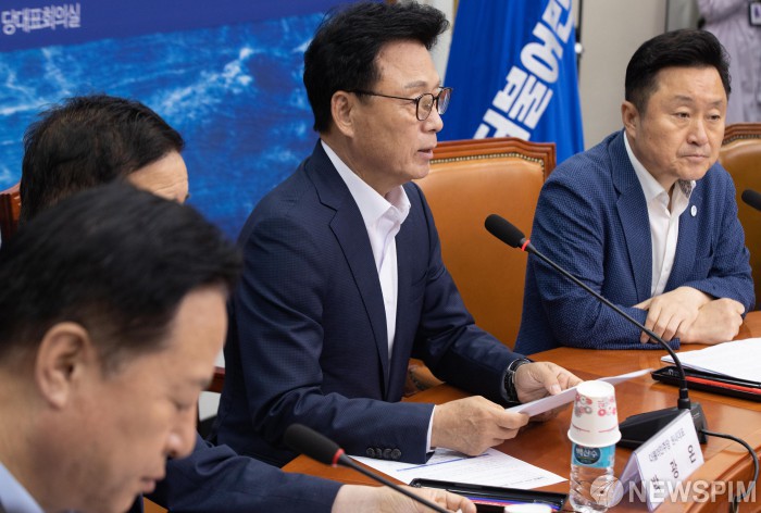 [서울=뉴스핌] 윤창빈 기자 = 박광온 더불어민주당 원내대표가 13일 오후 서울 여의도 국회에서 열린 대통령 처가 고속도로게이트 진상규명 특별위원회 발족식에서 모두발언을 하고 있다. 2023.07.13 pangbin@newspim.com