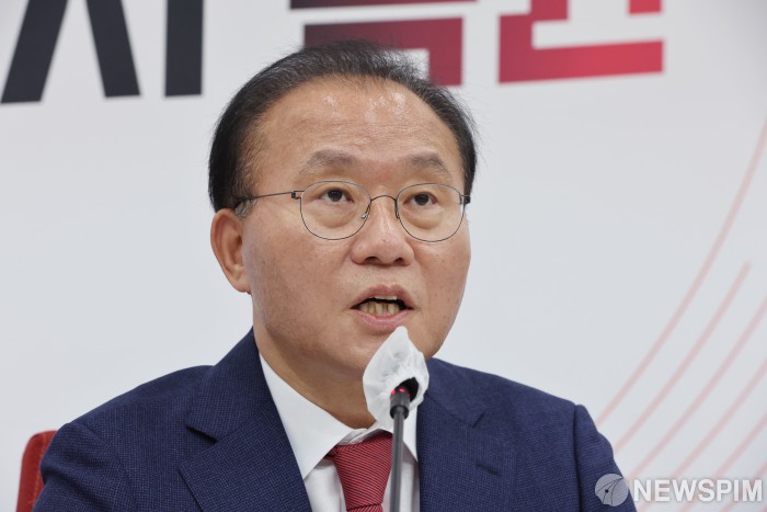 [서울=뉴스핌] 이형석 기자 = 윤재옥 국민의힘 원내대표가 14일 오전 서울 여의도 국회에서 취임 100일 기자간담회를 열고 있다. 2023.07.14 leehs@newspim.com