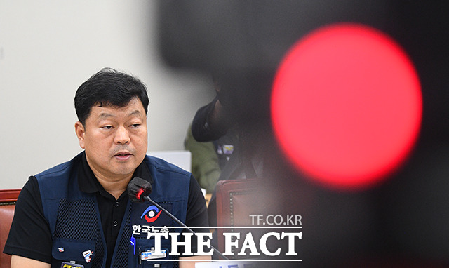 류기섭 한국노총 사무총장이 18일 오후 세종시 정부세종청사 최저임금위원회 회의실에서 열린 제14차 전원회의에 참석해 모두발언을 하고 있다./세종=이동률 기자 |